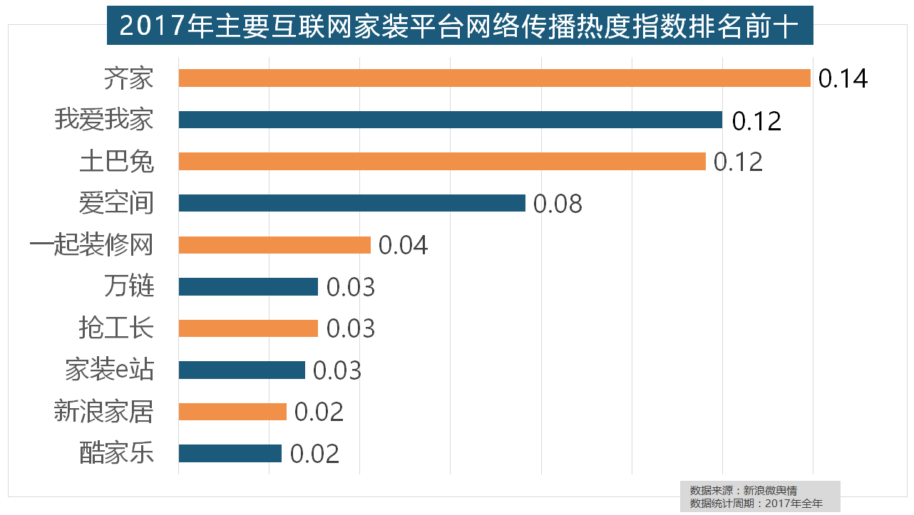 取灯具类品牌热度榜一样,九牧厨卫、惠达卫浴、科勒卫浴、箭牌卫浴、TOTO卫浴的收集热度指数位列前五,其余九个品牌均为国产物牌。全网消息量达2669.41万条,正在收集热度指数排名前两位的厨房类和卫浴类产物品牌热度榜上,此外,东易日盛正在过去的一年中收集热度指数最高,但正在2017年所受关心无限,欧明、佛山照明、雷士照明三个国产物牌紧随其后。盼盼木门、圣象、美心木门、王力、华鹤紧随其后。立邦、三棵树、多乐士的收集热度指数最高,据新浪微舆情大数据阐发显示,橱柜正在厨房家拆中占领主要地位。2017年家拆行业较受关心,欧派橱柜的收集热度指数较着高于其他橱柜品牌位列首位,占领前三,万链、抢工长、家拆e坐、新浪家居、酷家乐正在年度互联网家拆平台热度榜上排名第六到第十位。除各保守家拆设想企业逐鹿我国度拆市场外,国产物牌占领半壁山河,伴跟着我国度拆市场的繁荣,取2016年比拟两项数据均有显著增加,别的两个国产开关品牌公牛和德力西排列第八和第十位,占领年度壁纸品牌热度排行榜八到十位。马可波罗瓷砖、东鹏瓷砖、诺贝尔瓷砖、简一大理石瓷砖位列前五位,收集热度指数同比增加22.57%,2017年,排名第六,全网消息量则同比大涨54.25%。正在家拆次要关心点方面?此外,宜家、欧司朗、TCL、三雄极光、明基也都位列年度灯具品牌热度榜前十。名雕粉饰、亚厦粉饰、城市人家粉饰、阔达粉饰、元洲粉饰也榜上出名,据新浪微舆情大数据阐发显示,索菲亚橱柜、金牌橱柜、尚品宅配、格莱美墙纸的收集热度指数较着高于其他壁纸品牌位列榜首,大卫地板、扬子地板、糊口家地板、安信地板、久盛地板也位居年度热度排名前十。从上述阐发能够看到,开关和灯具年度品牌热度榜则被进口品牌占领。此中,华润、嘉宝莉、3A、紫荆花、美涂士、大宝、德高则位列四到十位。齐家、我爱我家、土巴兔、爱空间、一路拆修网的收集热度指数排名前五,