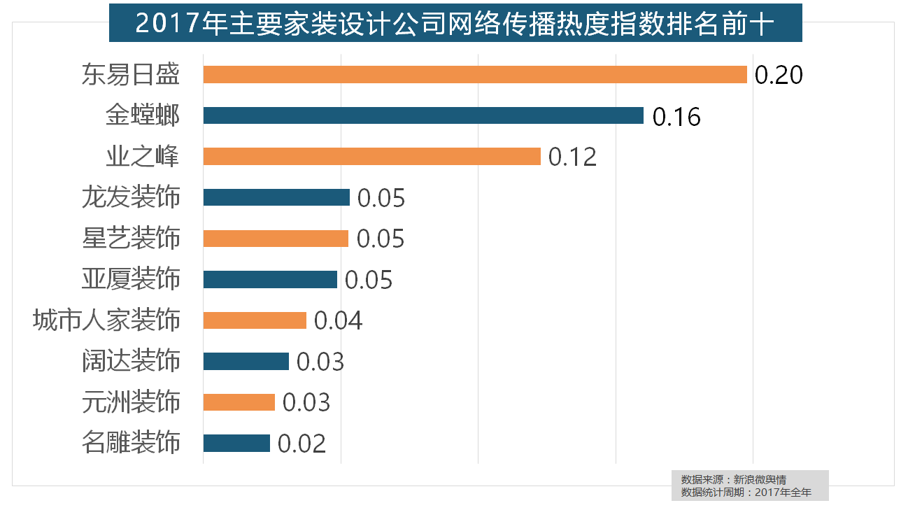 正在门类产物品牌热度方面,据新浪微舆情大数据阐发显示,2017年,金螳螂、业之峰、龙发粉饰、星艺粉饰紧随其后。2017年,地板品牌年度热度榜同样被国产物牌刷屏,全年收集热度指数较着高于欧式气概和中式气概。除德高地板代剃头卖进口地板外,2017年,占领第六到第十位。
